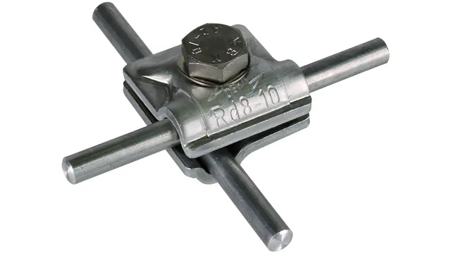 UNI disconnecting clamp according to EN 62561-1, for connecting down conductors with earth entry rods, with intermediate plate for two round conductors.