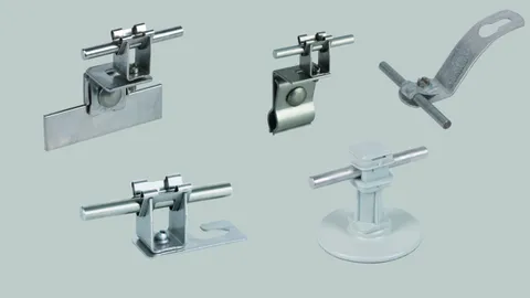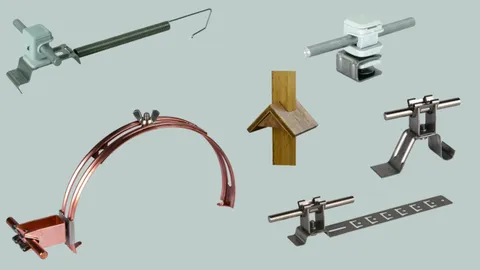 Adduzione a terra, linguette di connessione, staffa portafilo per tetti, cassette di sezionamento