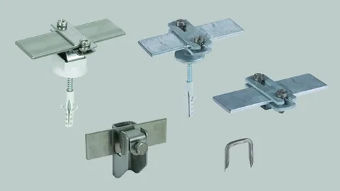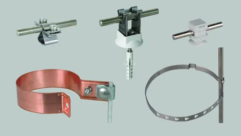 Staffa portafilo per conduttori tondi e piatti e per pluviali e fascette per pluviali. Connettori KS.
