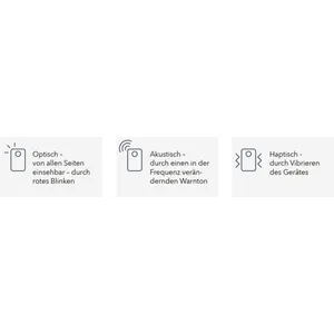 - Dreifacher Alarm. Eine optische, akustische und haptische Warnung verhindern ein Eindringen in die Gefahrenzonen.