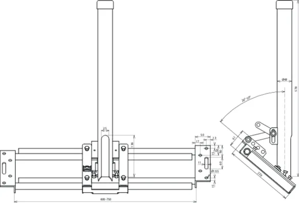 Verstellbereich: 600-750 mm
