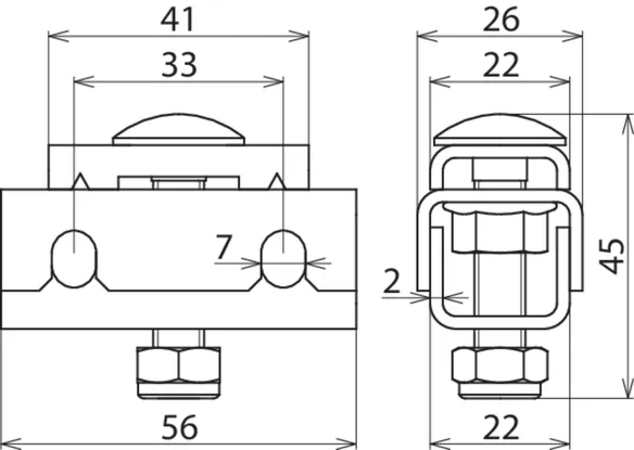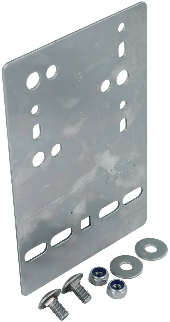 | Befestigungsbohrungen für Gitterbahn | [4x] 9 x 20 / [1x] 9 x 9 mm |