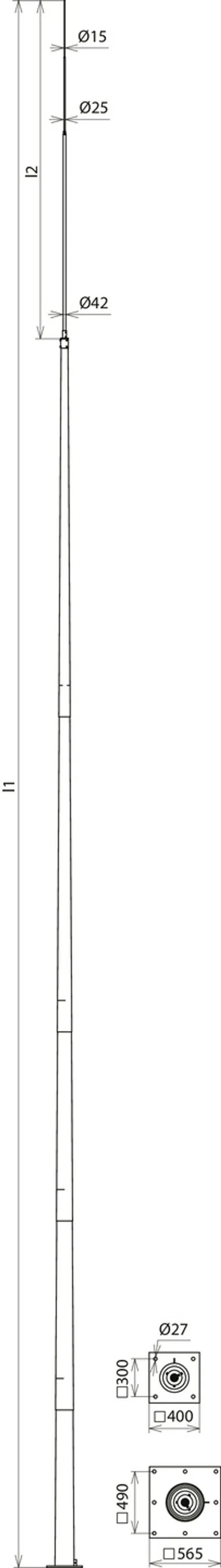 Tele-Blitzschutzmast im Köcher- oder Betonfundament Höhe 19,38 m