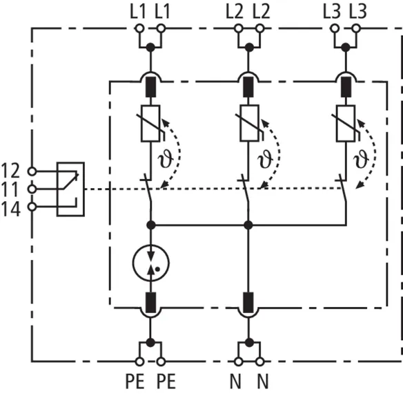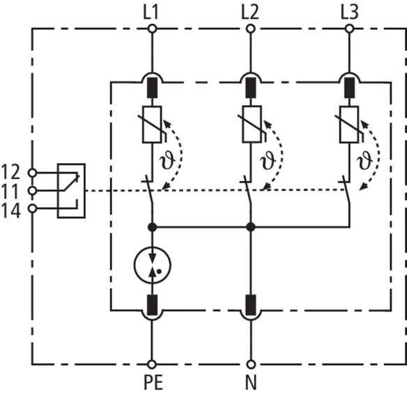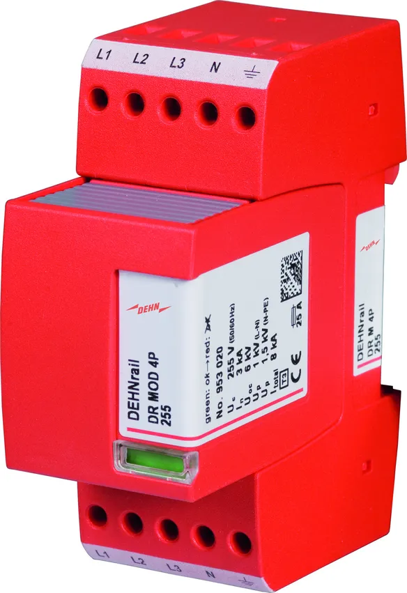 | Gesamtableitstoßstrom (8/20 µs) [L1+L2+L3+N-PE] (Itotal ) | 8 kA |