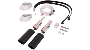 Anschlussset für HVI power Leitung zur Verlegung an HVI power Stützrohren GFK / Al bestehend aus Anschlusselemente, Gewindestifte, Anschlussteil, Schrumpfschlauch, Kabelbinder und Befestigungsring mit einem geschlitzten Leitungshalter (Ø27 mm).
