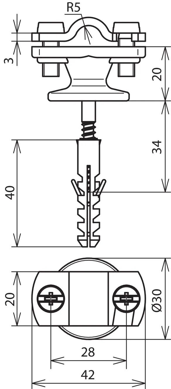 Leitungshalter Aufnahme Rd: 7-10 mm
