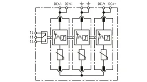 | Max. Ableitstoßstrom (8/20 µs) [(DC+/DC-) --> PE] (Imax ) | 25 kA |