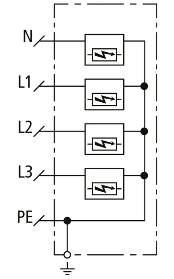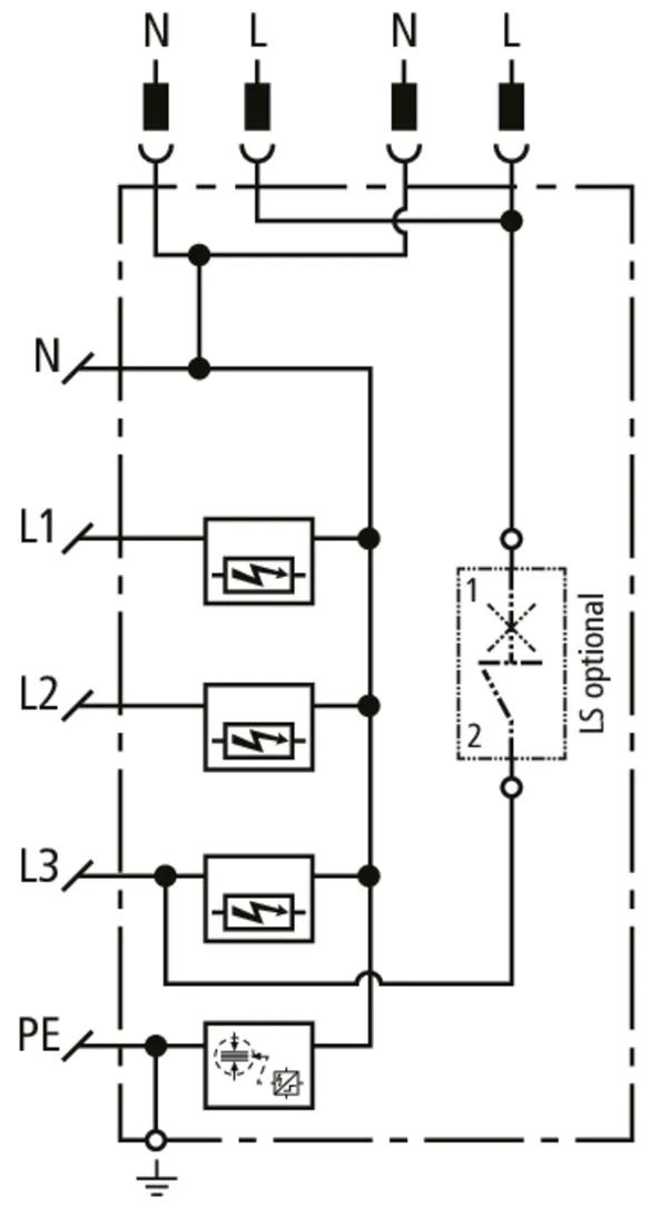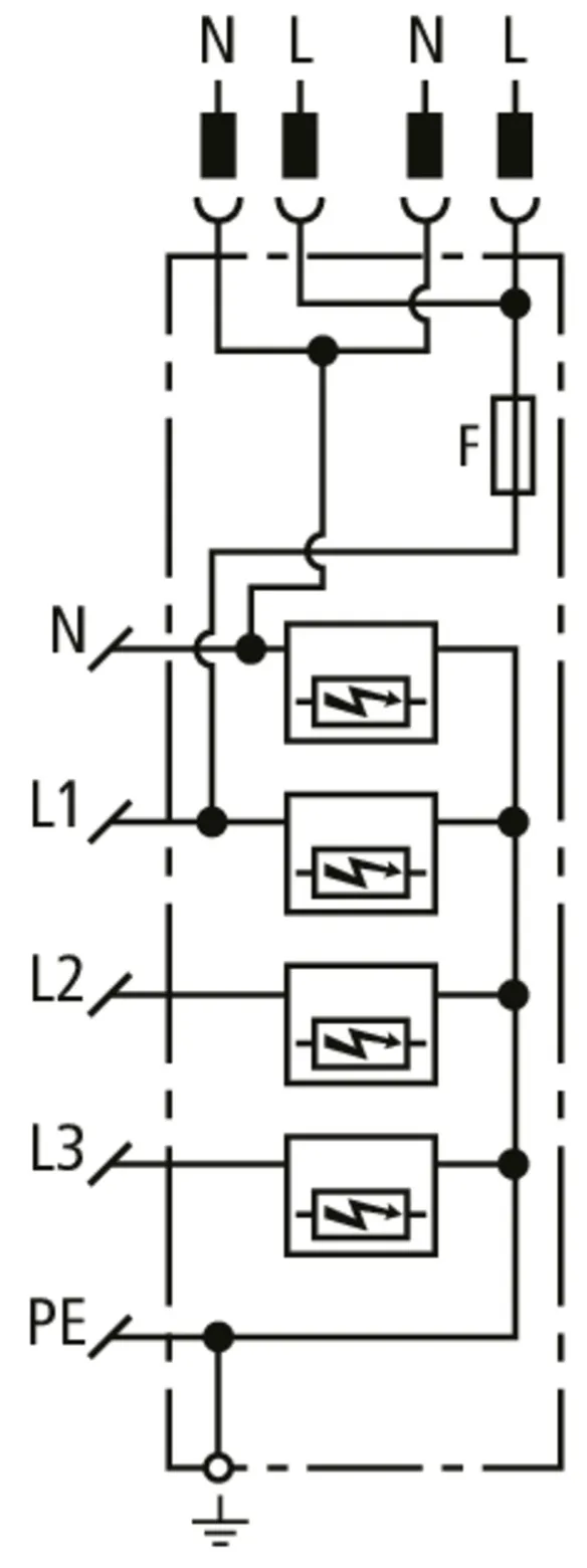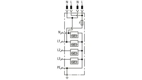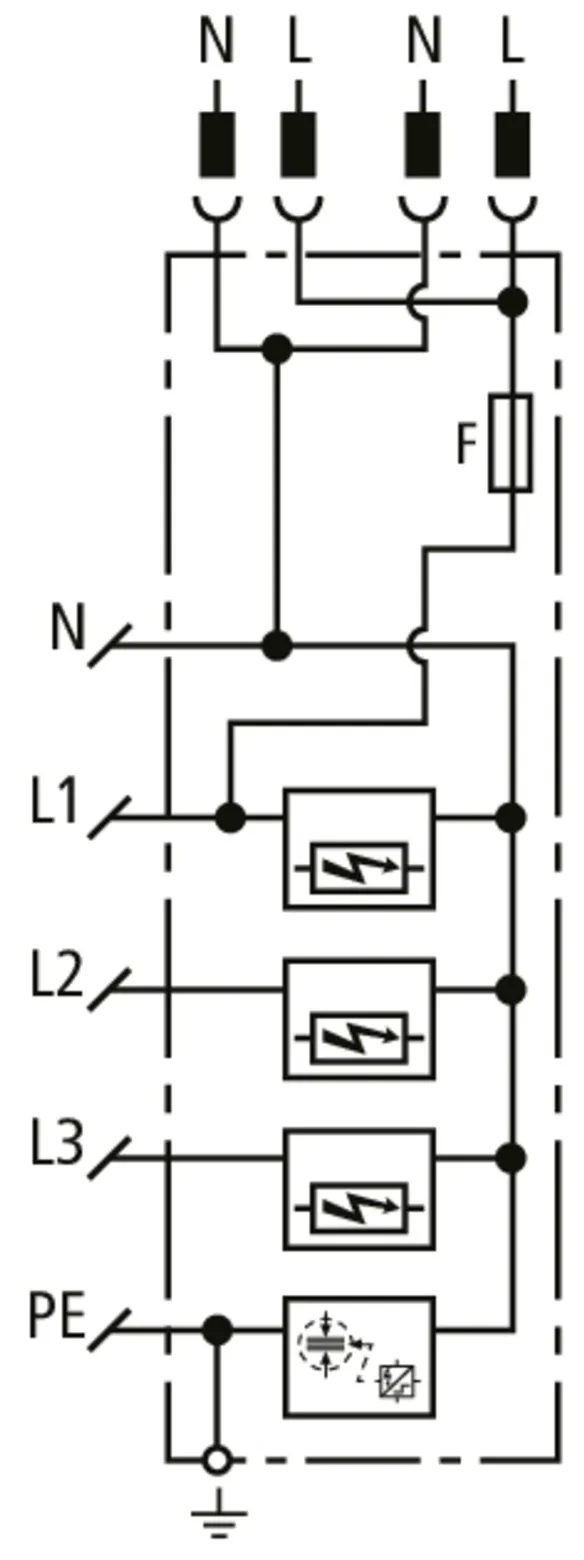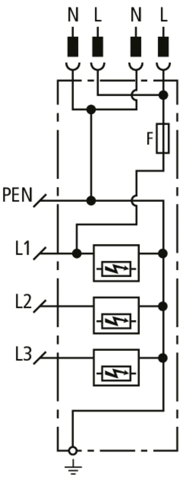| Blitzstoßstrom (10/350 µs) [N-PE] (Iimp ) | 30 kA |