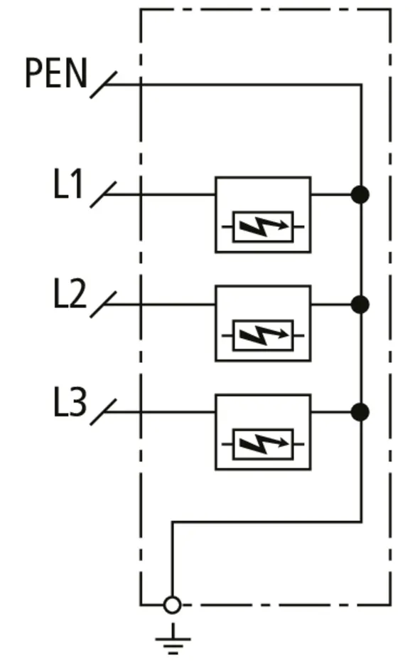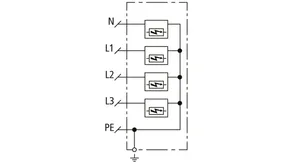 | Blitzstoßstrom (10/350 µs) [L1+L2+L3-PEN] (Itotal ) | 22,5 kA |