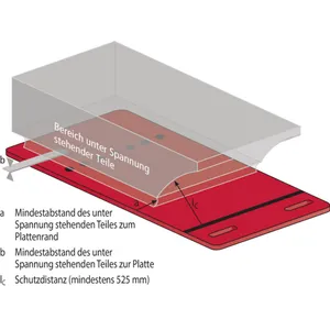 Die Hilfsmarkierung ist eine gepunktete Linie mit mindestens 525 mm Abstand vom hinteren Plattenrand. Diese Markierung darf beim Auflegen der isolierenden Schutzplatte nicht übergriffen werden.