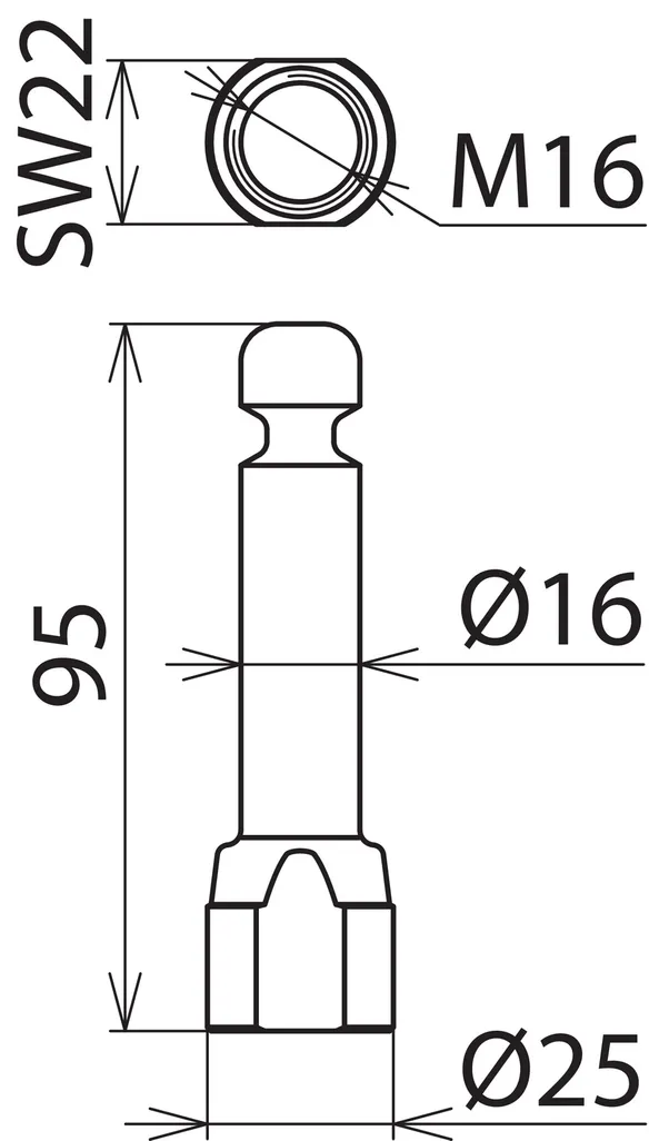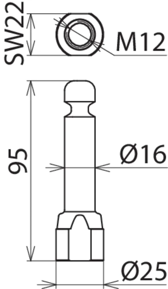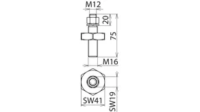 Anschlussstück zum Anschrauben, mit Gewindebolzenübergang M12 auf M16