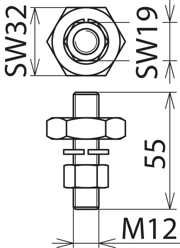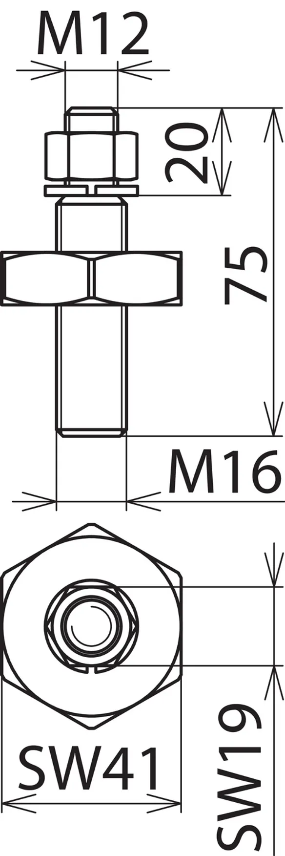Abmessung M12 x 20 mm / M16 x 55 mm