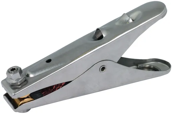 Messingbacke mit Stahlspitzen (Werkst.-Nr. 1.4104) und Kontaktbügel aus Kupfer.