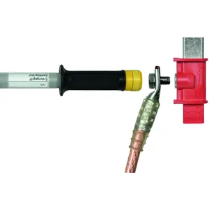 • Sichere Handhabung mit isoliertem Erdungsgriff TI (mit Doppelfunktion), geeignet sowohl zum Einsetzen und Herausnehmen der Erdungspatronen mit M10-Anschluss als auch zum Aufschrauben der Erdungs- und Kurzschließvorrichtung (EuK-Vorrichtung)