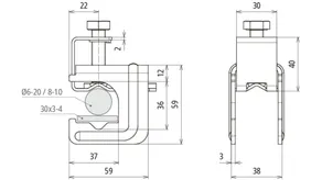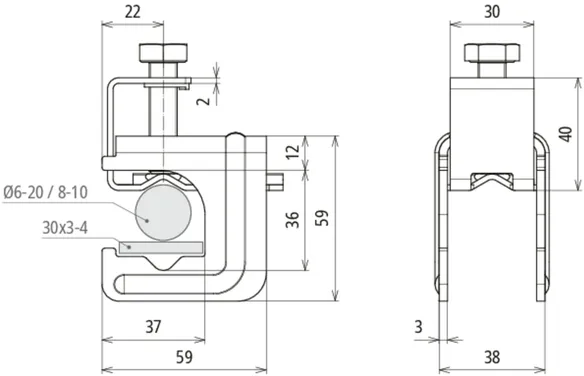 | Klemmbereich Rd / Fl | (+) 6-20 / 30 x 3-4 mm |