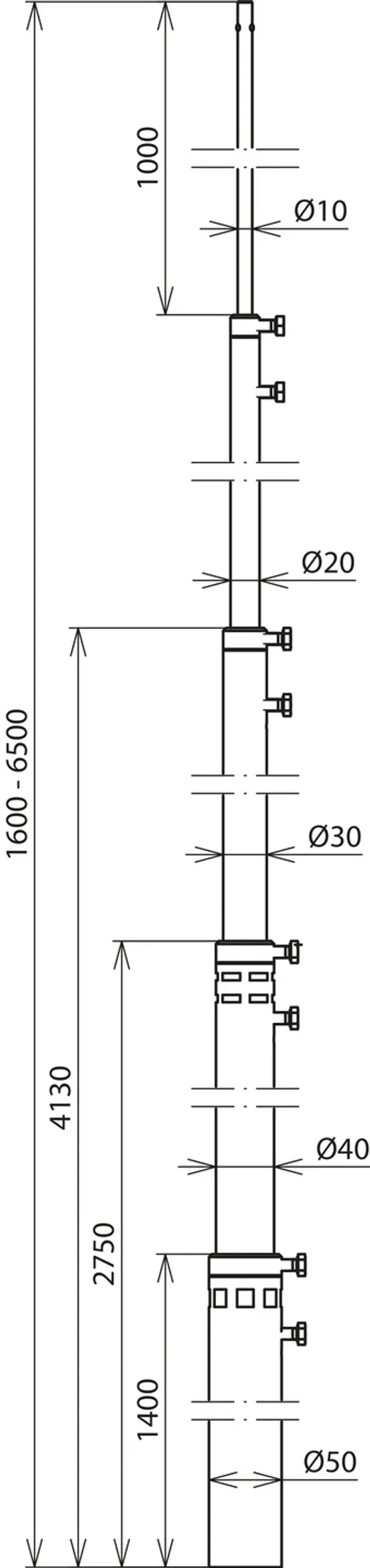| Fangmast (Ø Länge) | 50/60/50/40/30/20-7000 mm |