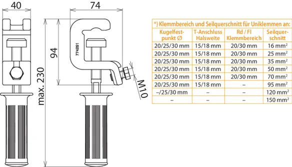 Für die profilfreie Erdung von Schienenprofilen S49, S54, S64 und UIC60.