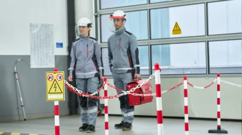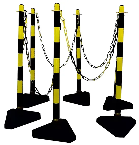 Zum Absperren der Arbeitsstätte (6 Pfosten, 10 m Kette, 10 Glieder, 10 Haken).