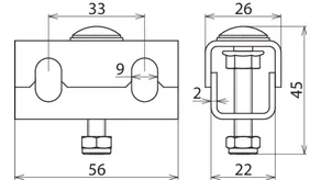 | Fixing holes for wire cable tray | [4x] 9 x 20 / [1x] 9 x 9 mm |