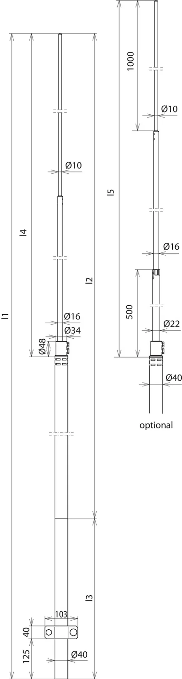 | Max. free length with air-termination rod (l2) | 4000 mm |