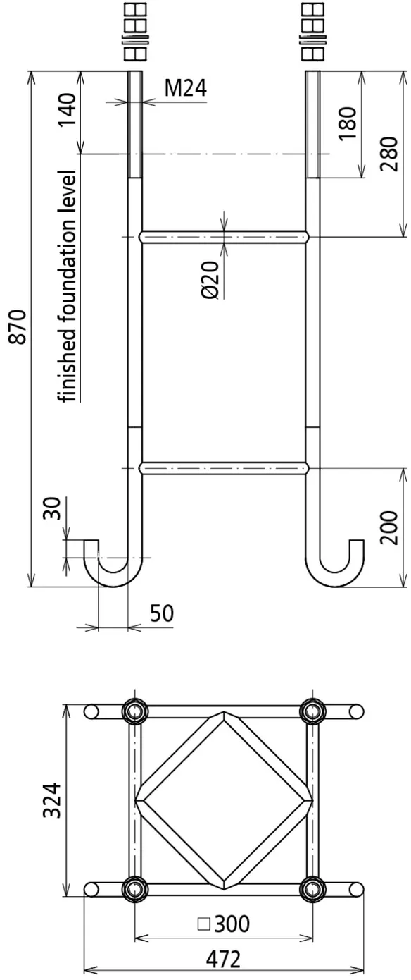 | Type of threaded bolt | 4x M24 (300 x 300 mm) |