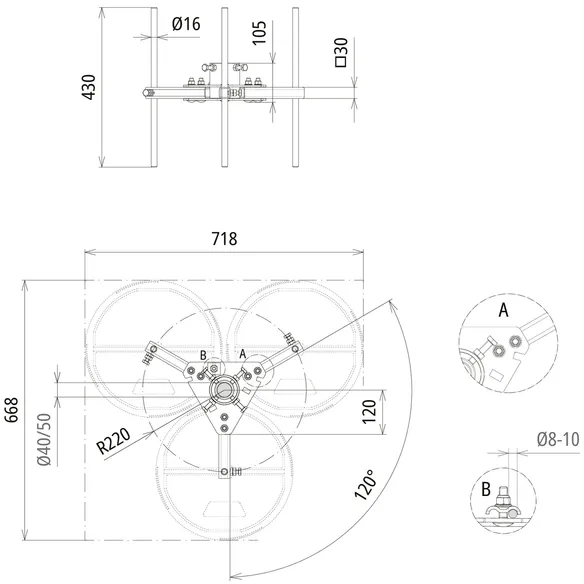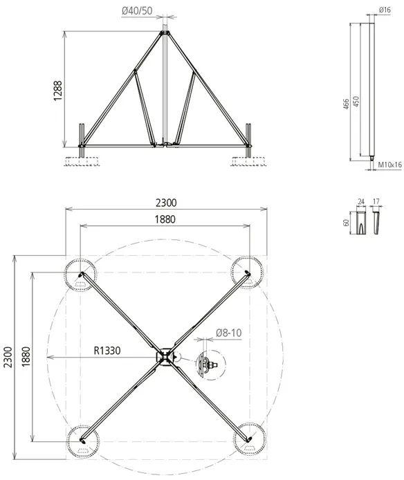 For air-termination rods D40, D50 and D60, DEHNiso Combi supporting tubes with air-termination rod / tip or HVI Conductor installed in / on the supporting tube.