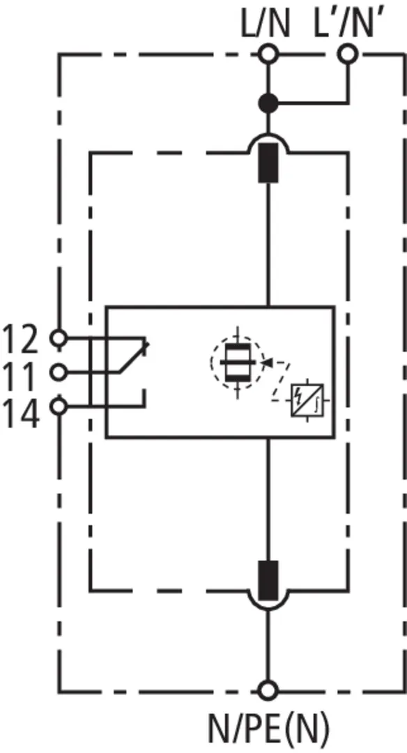 Coordinated and modular single-pole lightning current arrester with a high discharge capacity; with remote signalling contact for monitoring system (floating changeover contact).