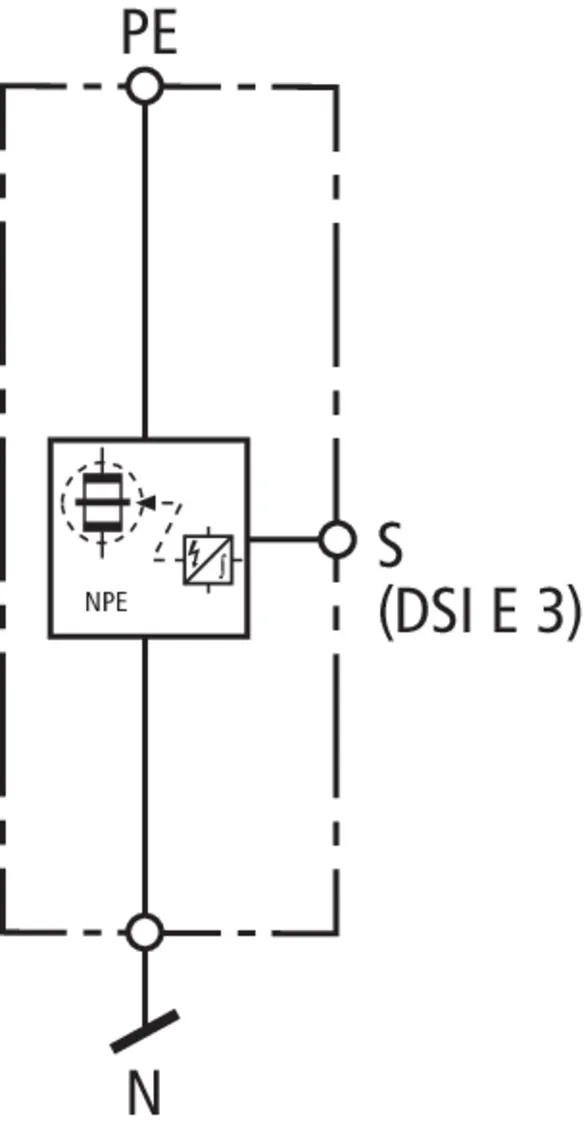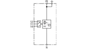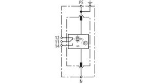 Single-pole, modular coordinated N-PE lightning current arrester for UC = 255 V; optionally available with remote signalling contact for monitoring device (floating changeover contact).