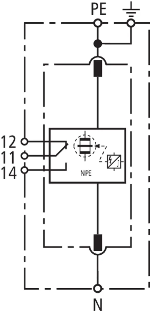 Coordinated single-pole N-PE lightning current arrester; FM version with floating remote signalling contact.