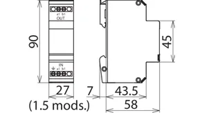 Energy coordinated combined arrester for protecting the rectifier in the protective circuit (red colour). Pluggable remote signalling contact (break contact) for overload indication (temperature monitoring of the varistors). Installation in sheet metal housing recommended. Low impulse sparkover voltage due to capacitive control.