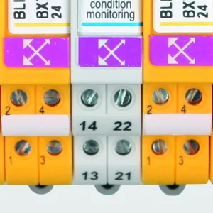 DIN rail mounted device with integrated RFID LifeCheck sensor for condition monitoring of max. 10 BLITZDUCTOR XT / XTU arresters with RFID LifeCheck technology. Visual operating state indication via three-coloured LED in conjunction with remote signalling contact (break or make contact).
