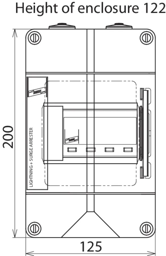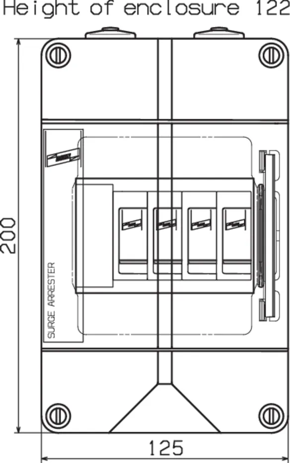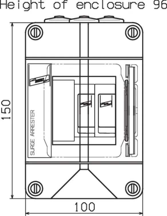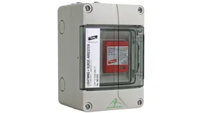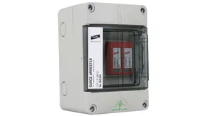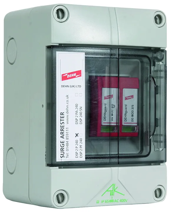 Mains connection box kit for single-phase 240 V TN systems consisting of an IP 65 enclosure equipped with DEHNguard modular surge arrester (Part No. 952 200) or type ... PA ... equipped with surge arrester (Part No. 952 205) with integrated remote signalling contact for monitoring device.