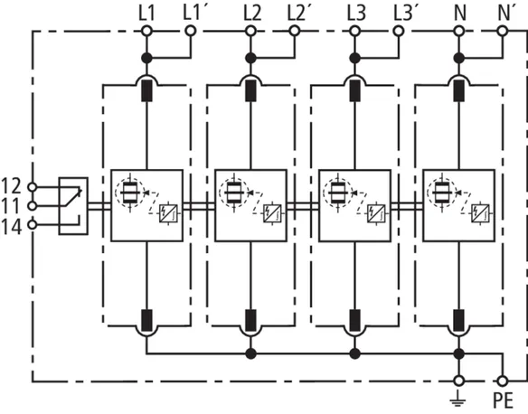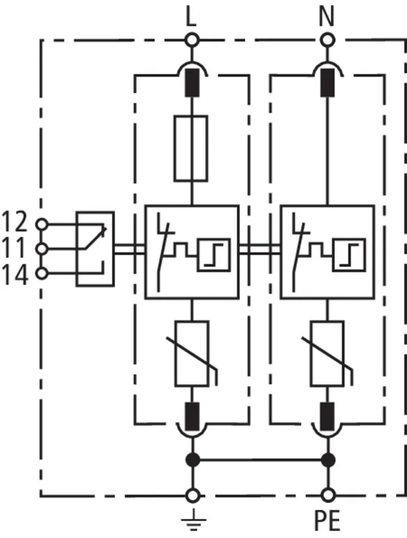 | Nominal discharge current (8/20 µs) [L-N]/[N-PE] (In ) | 12.5 / 25 kA |