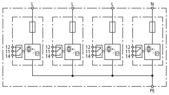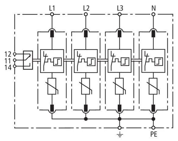 | Nominal discharge current (8/20 µs) [L-N]/[N-PE] (In ) | 12.5 / 50 kA |