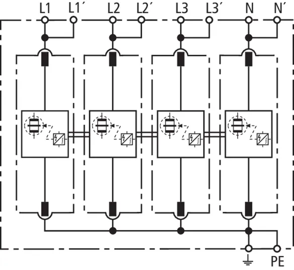 | Lightning impulse current (10/350) [L1+L2+L3+N-PE] (Itotal ) | 50 kA |