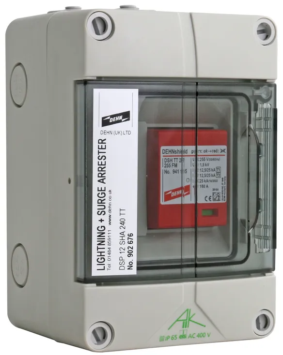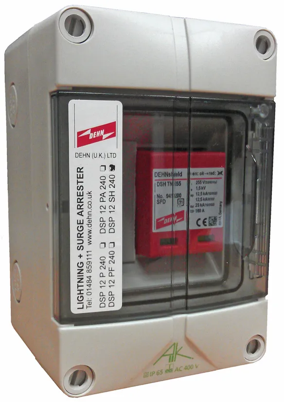 enclosure equipped with DEHNshield combined lightning current and surge arrester (Part No. 941 310)
