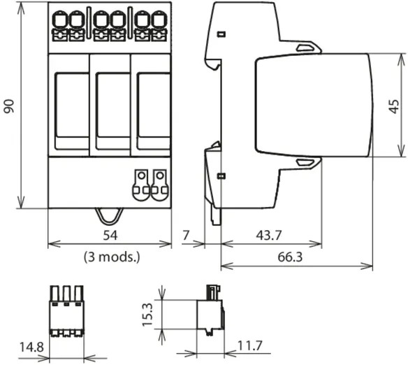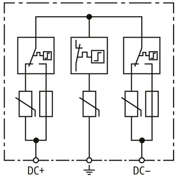 | Max. discharge current (8/20 µs) [(DC+/DC-) --> PE] (Imax ) | 25 kA |