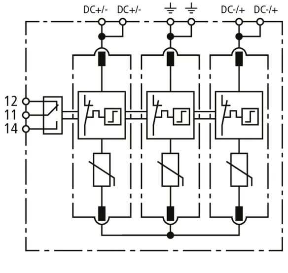 | Nominal discharge current (8/20 µs) [(DC+/DC-) --> PE] (In ) | 12.5 kA |