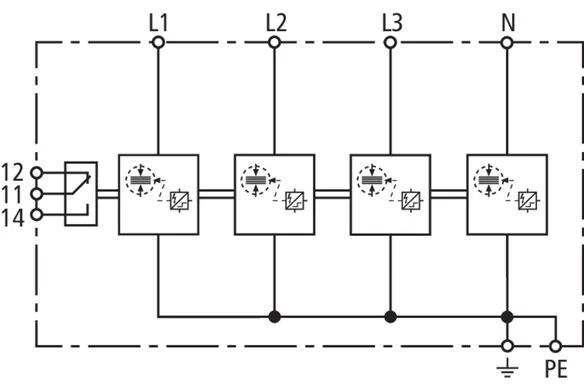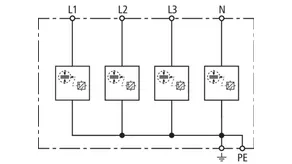 | Lightning impulse current (10/350 µs) [L1+L2+L3-PEN] (Itotal ) | 22.5 kA |