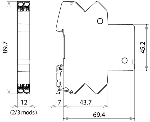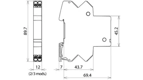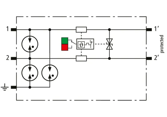 Space-saving, compact surge arrester with a width of 6 mm and push-in connection technology with status indication. Finely limiting, single-stage surge protection with powerful diodes for protecting two single cores sharing a common reference potential as well as unbalanced interfaces.