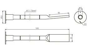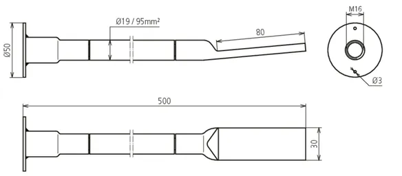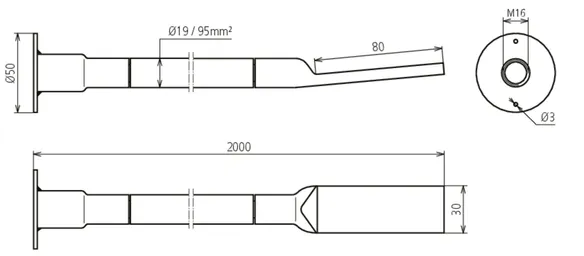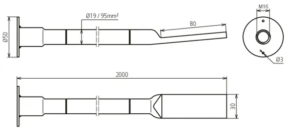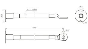 | Borehole cable lug | 13 mm for M12 and 17 mm for M16 |