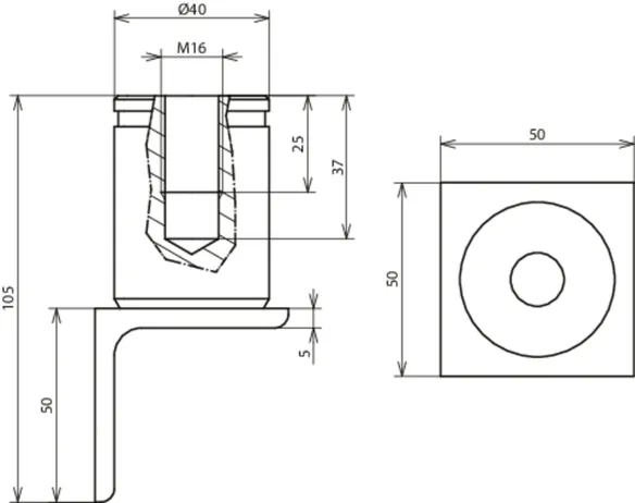 | Angle dimensions (l x w x d) | 50 x 50 x 5 mm |
