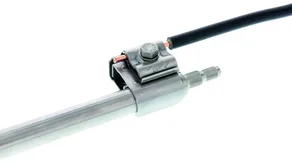 Gutter clamp for the lightning-current-carrying connection of the antenna earthing (e.g. 16 mm2) at the cross point with the gutter.