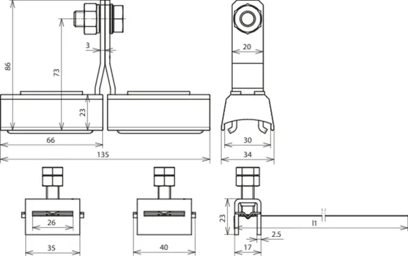 – flat conductor made of copper with minimum dimensions 20 x 2.5 mm with a hole Ø10.5 mm
