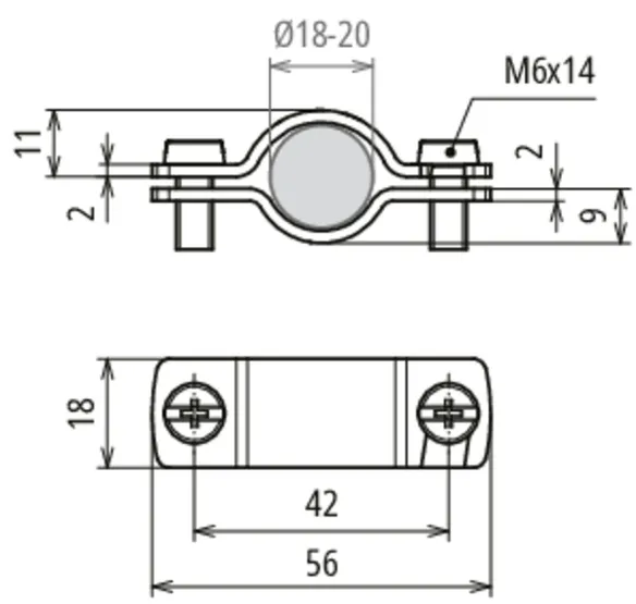 Fixing kit for attaching the HVI light plus Conductor to the HVI light plus supporting tubes, Ø40 mm, consisting of connection plate and fixing ring with stainless steel clamp for the sealing end (including four plastic holder halves and two cable ties).